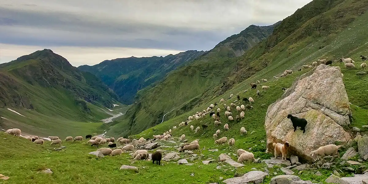 Snacks arrived at 4 PM, followed by our acclimatization walk. Later, as the skies cleared, we visited the upper waterfall to enjoy the views and took some photos. On our way back, we saw a huge flock of sheep accompanied by their shepherd dogs entering the campsite — it looked like something straight out of a fantasy novel.
