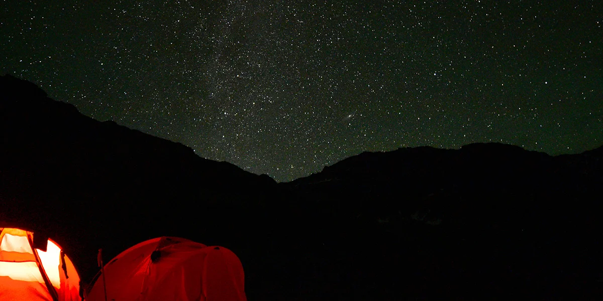 My alarm went off at 1:00 AM. I tried to steal a few more minutes of sleep, but curiosity got the better of me. I stepped out of the tent to check if it was really worth waking up so early — and lo and behold, the sky was crystal clear, stars scattered all across the horizon.